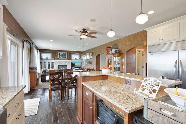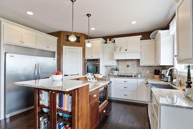 Geckler Built, Former Parade Home. 4 Bedrooms on 1 Level PLUS a Bonus Room above the 4 Car Garage! Enameled Woodwork. Gourmet Kitchen w/Top of the Line Appliances w/a 72″ Fridge/Freezer. Granite Counters & Limestone Back-splash and a “Farm Sink”. 2 Panel Doors. Main Floor Laundry & Office. Main Floor Family Room w/Fireplace & Built Ins. 9′ Ceilings. Hand Scraped Maple floors and Custom Marbeling Technique to all Main Level Walls. Luxury Owners Suite w/Vaulted Ceilings & Walk in Closet w/Custom Shelving. Luxury Bath w/Jetted Tub and Limestone 2 Person Walk in Shower!