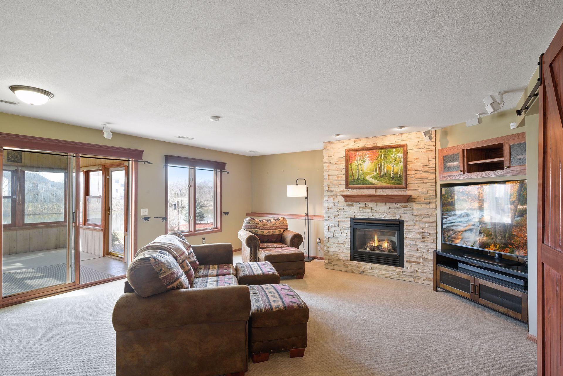 Make This One Yours! Beautifully Maintained and Updated 4 Bed 3 Bath Multi-Level! Gorgeous Pond Setting!! Kitchen Features a Center Island with Seating, Granite Countertops, Tile Backsplash and Under Cabinet Lighting. 13′ Vaulted Living Room with Soft Contemporary Feel, Separated from the Dining Room by Built-in Buffet. Lower Level Family Room with Stone Front Gas Fireplace. Walk Out into the 3 Season Porch to Enjoy the Tranquil Pond Setting! Bathrooms Updated with Quartz Counter Tops. Owner’s Suite Provides a Private Master Bath and Walk in Closet. Professionally Landscaped Yard with Multiple Raised Garden Beds. Garage is Insulated/Heated, Epoxied Floor with Drain and Over Head Storage. New Windows in the 3 Season Porch. 2020 Roof. Reverse Osmosis Water Filtration System. On Demand Water Heater. Deck, 3 Season Porch and Cozy Family Room Fireplace Make this a Home of Year Round Relaxation! Family Room TV, Surround Sound and TV Stand Stay with the House!
